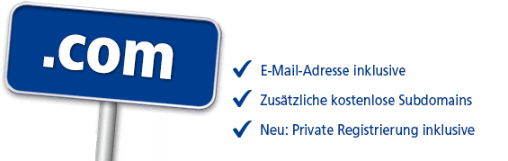 Sie können zwar keine einzelne Domain bei 1&1 kostenlos registrieren, erhalten aber ohne Aufpreis eine Domain in den 1&1 MyWebsite-Tarifen dazu.